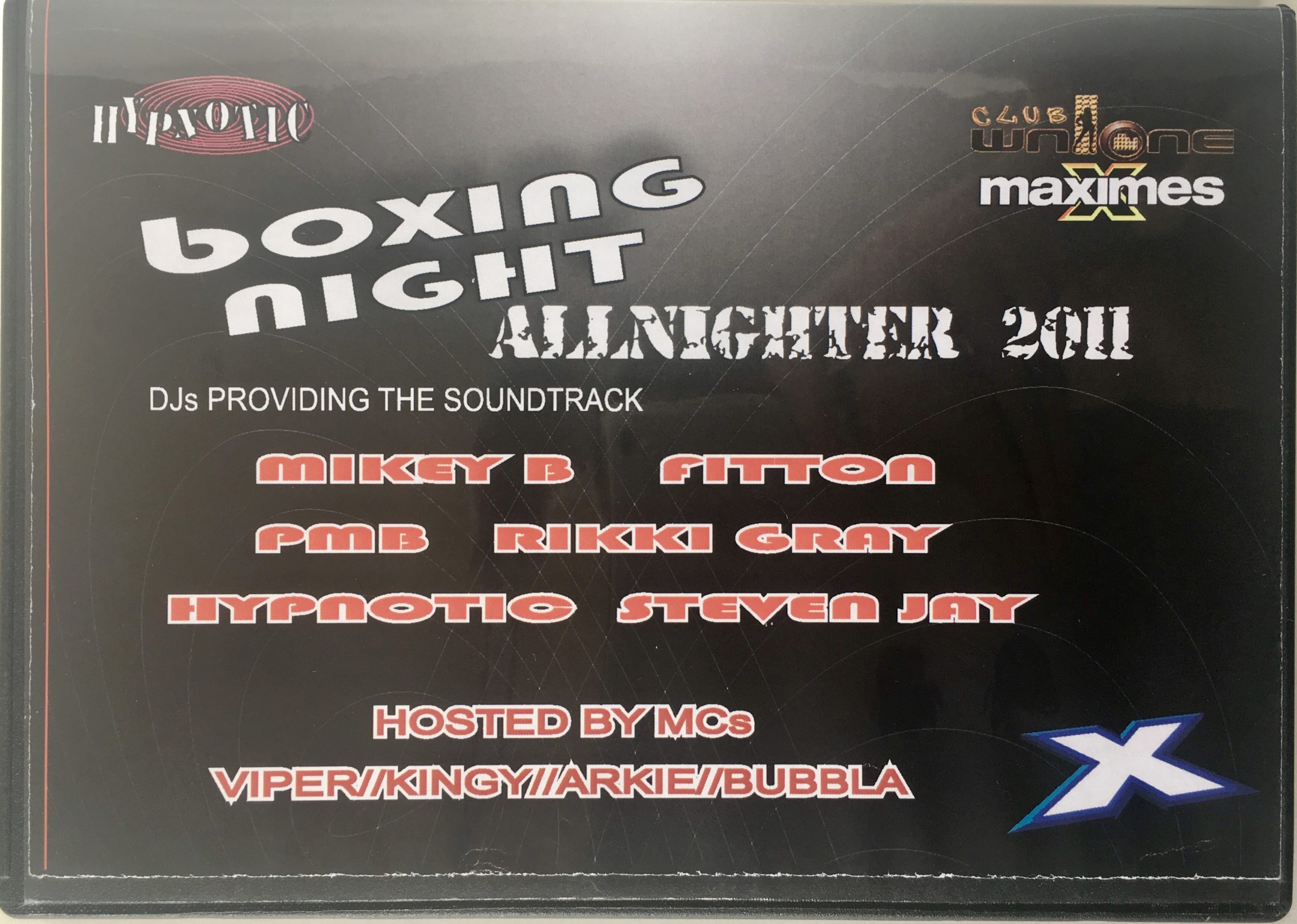 Hot 4 x CD pack recorded live at Club WN1 (formerly Maximes), Wigan on Boxing Night 2011. This is always one of the biggest nights of the year and this was no exception, after the sudden closure of Wigan Pier Mikey B made a rare apperance at Maximes which was a sure fire recipe for a brilliant night ! Hosted by Mc’s Viper, Kingy, Arkie and Bubbla and featuring DJ’s Mikey B, Fitton, PMB, Rikki Gray, Hypnotic and Steven Jay. Great stuff.