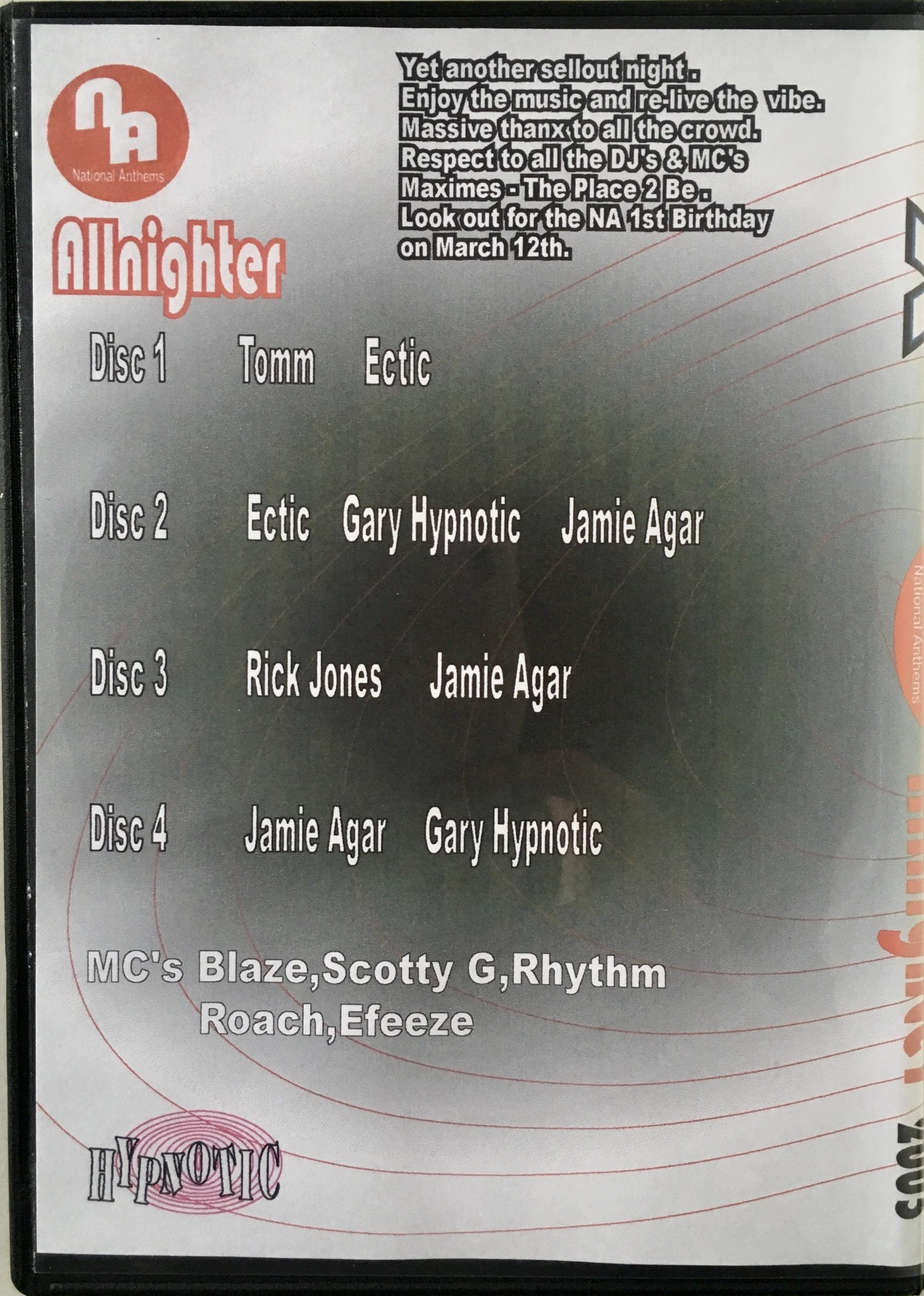 Hot 4 x CD pack recorded live at Maximes, Wigan on February 12th 2005 featuring DJs Tomm,  Gary Hypnotic, Ectic, Jamie Agar, Rick Jones and MC’s on the mic Blaze, Scotty G, Rhythm, Roach and Treble.