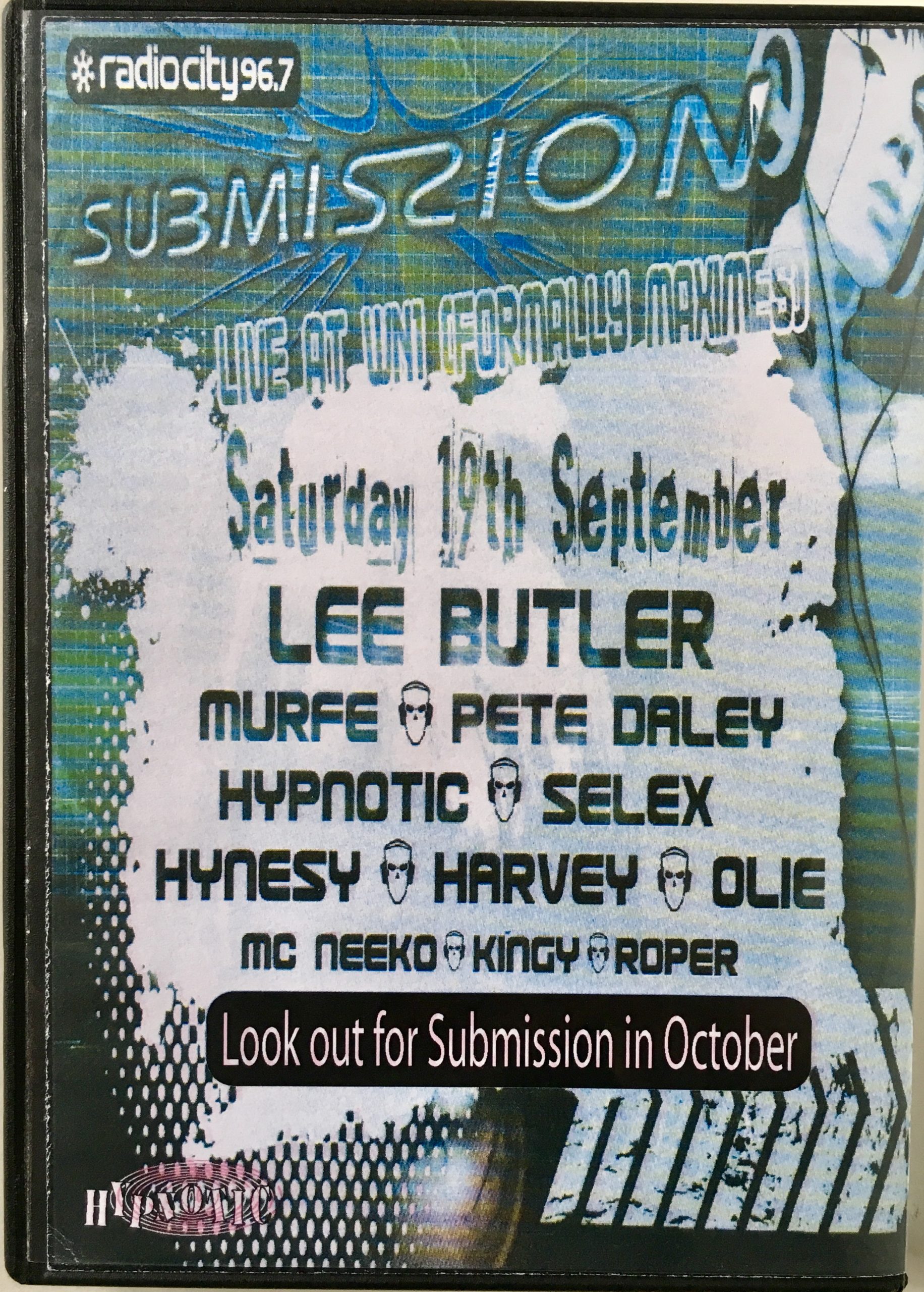 Excellent 4 x CD pack recorded live at the Maximes Submission event on Saturday 19th September 2009 at Club WN1 (which was formerly called Maximes). Featuring Radio City top boy and legendary Liverpool DJ Lee Butler alongside Murfe, Pete Daley, Gary Hypnotic, Gary Selex, Hynesy, Harvey, Olie plus your host MC’s Neeko, Kingy and Roper.