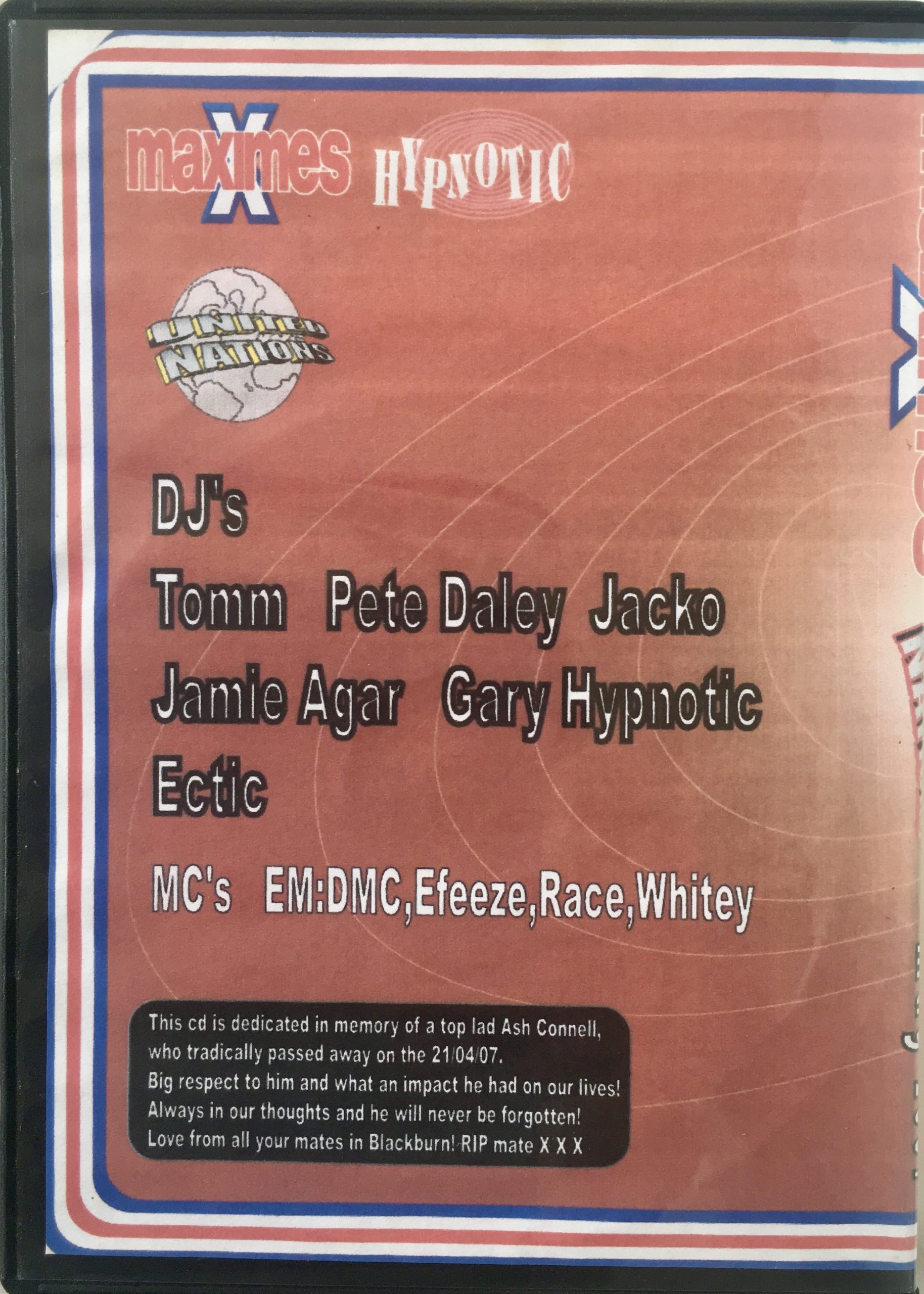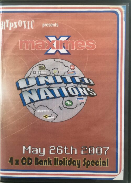 Another night of the biggest and bounciest tunes around brought to you straight from Maximes Nightclub, Wigan UK. This 4 x CD pack was recorded live at their Maximes United Nations Bank Holiday Special event on Saturday May 26th 2007 and features DJ`s Tomm, Pete Daley, Jacko, Jamie Agar, Gary Hypnotic, Ectic plus your host MC’s on the mic EM:DMC, Efeeze, Race and Whitey.